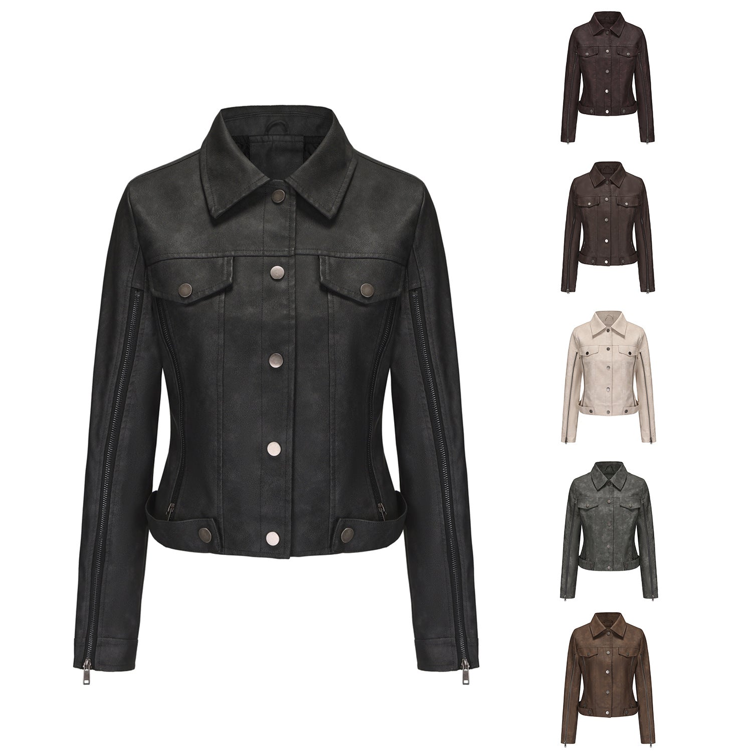 Women's Fashion More Than Zipper Decorations Motorcycle Long-sleeved Popular Jackets