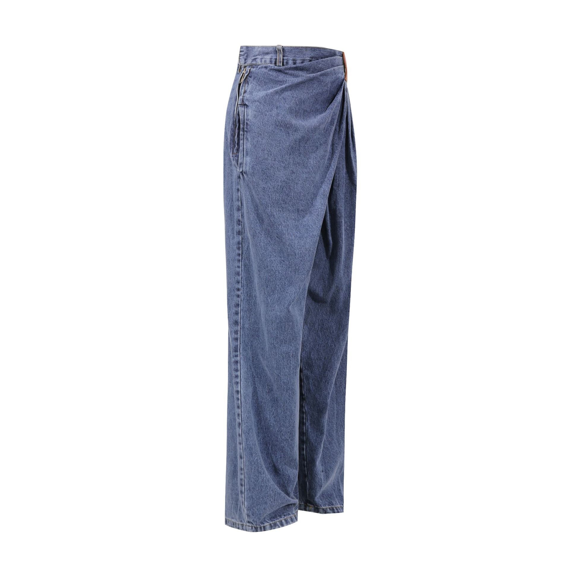 Women's Fashion Personality Summer Trendy Pleated Stitching Jeans
