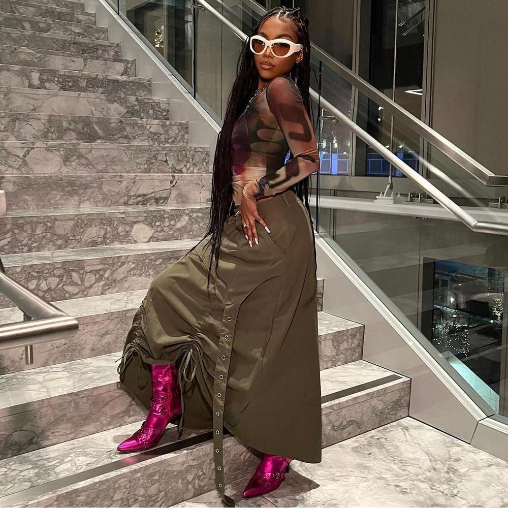 Women's Fashion Personalized Pocket Slit Tassel Drawstring Skirts
