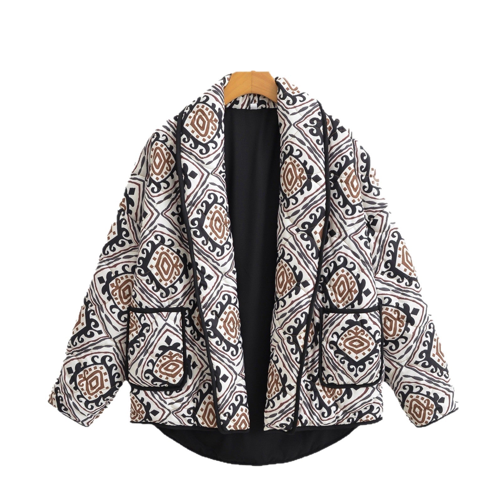 Women's Fashion Printed Fake Two-piece Contrast Color Coats