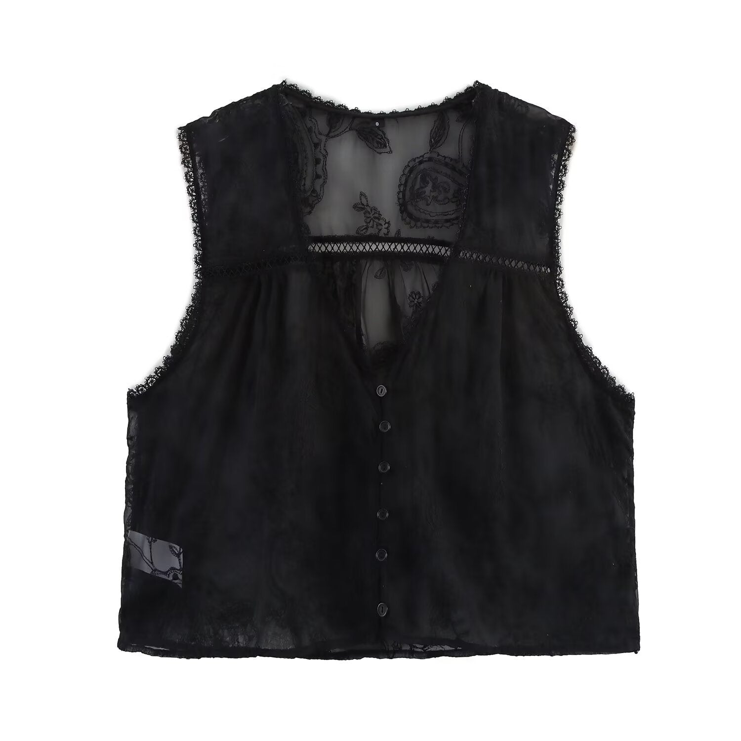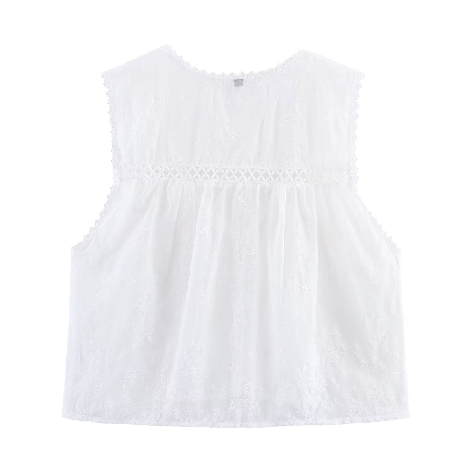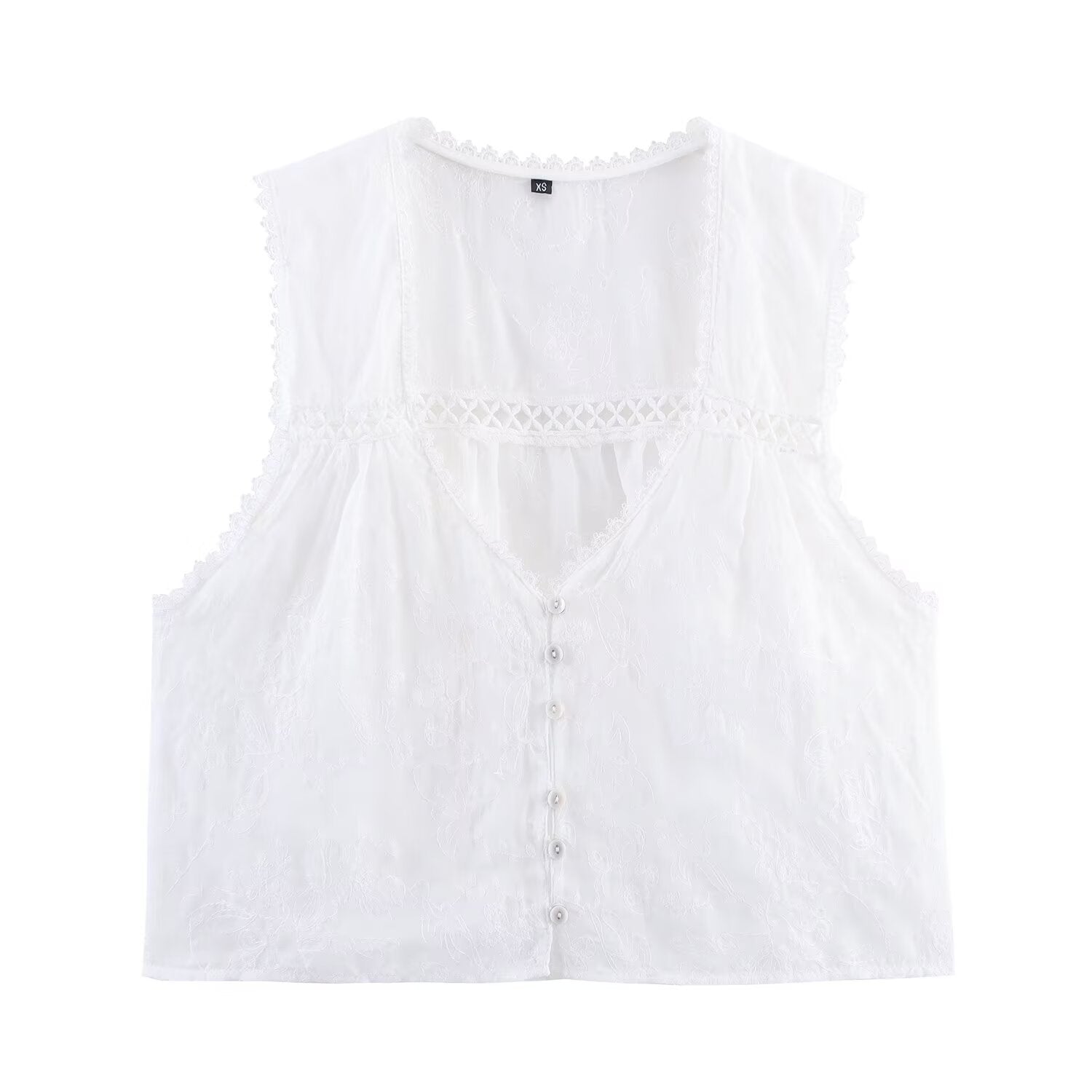 Women's Fashion Vertical Lace Embroidered Decorative Sleeveless Vests