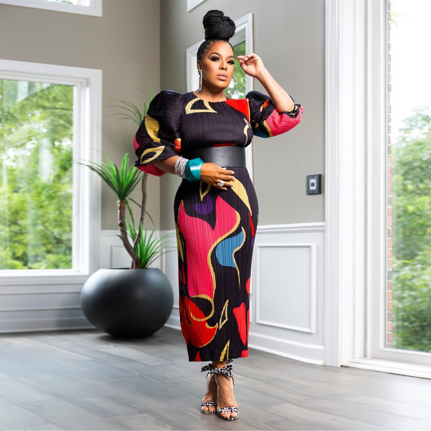 Women's Fashion Wear Lantern Sleeve Pleated Dress Dresses