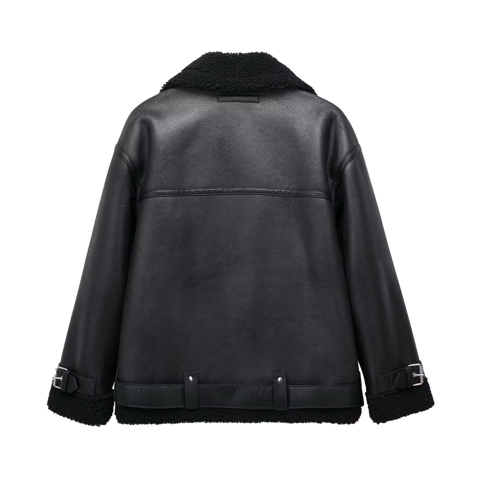 Women's Fashion Zipper With Belt Double-sided Loose Jackets