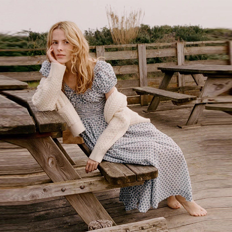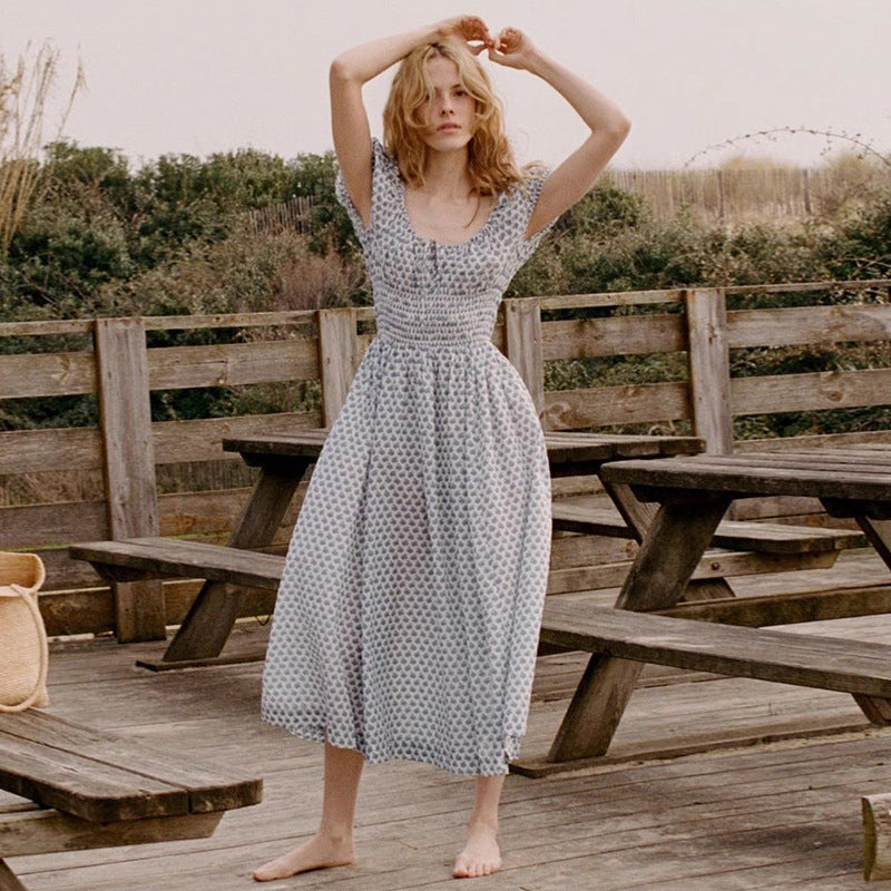 Women's Floral Square Collar Cotton Holiday Midi Dress Dresses