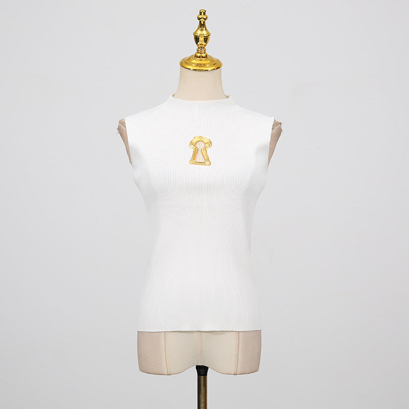 Women's French Simplicity Summer High-grade Temperament Commute Turtleneck Metal Blouses
