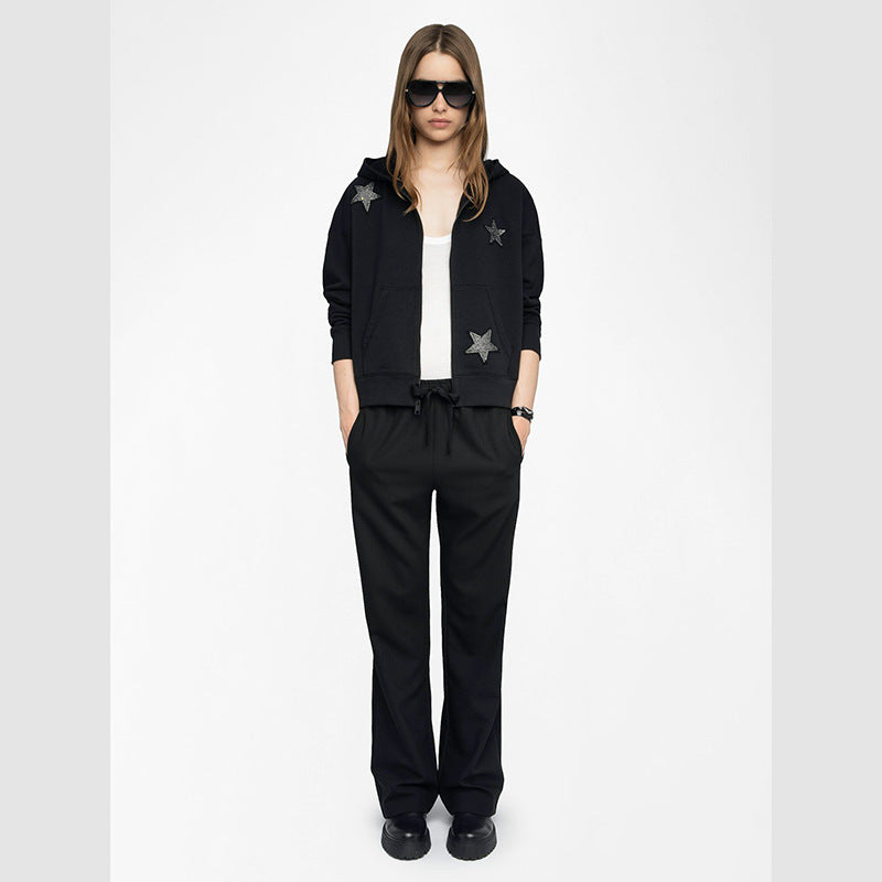 Women's Full Of Embroidered Patch Hot Drilling Fleece Zipper Hooded Sweaters