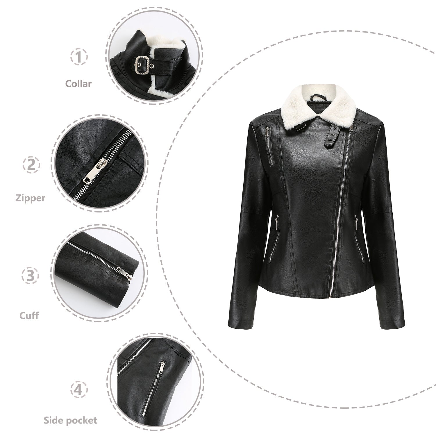 Women's Fur Integrated Leather Fleece-lined Long Sleeve Jackets
