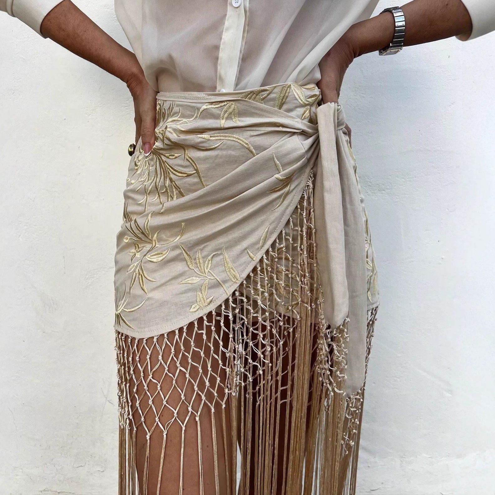 Women's Glamorous Lace Embroidery Tassel Stitching Skirts