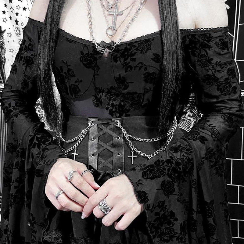 Women's Halloween Autumn High Waist Strap Cross Skirts