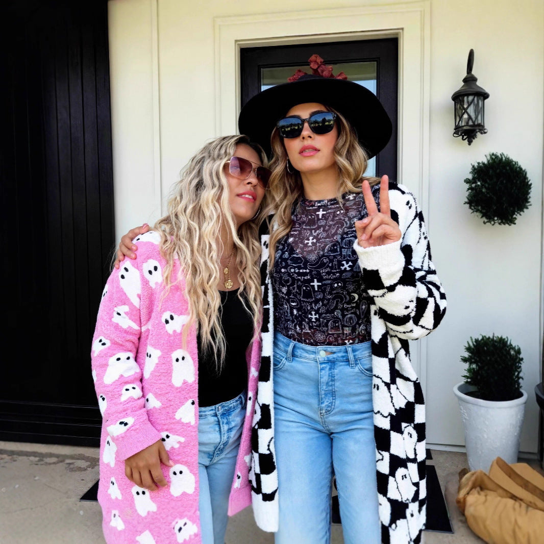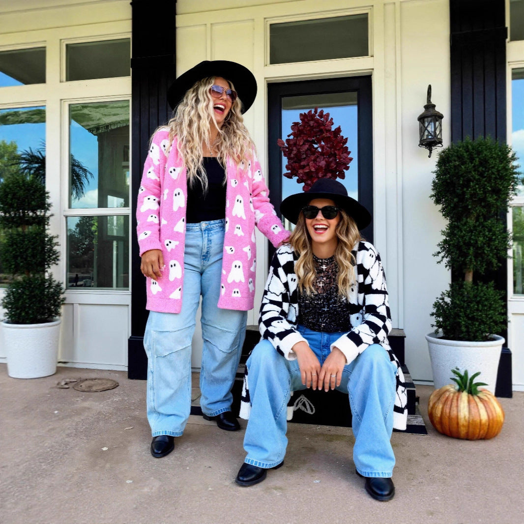 Women's Halloween Ghost Pattern Mid-length Knitted Loose Sweaters