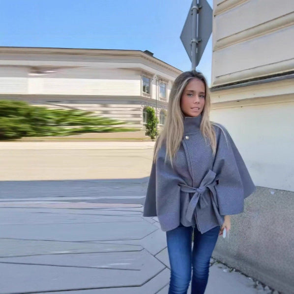 Women's High Quality Woolen Fashion Stand Collar Coats
