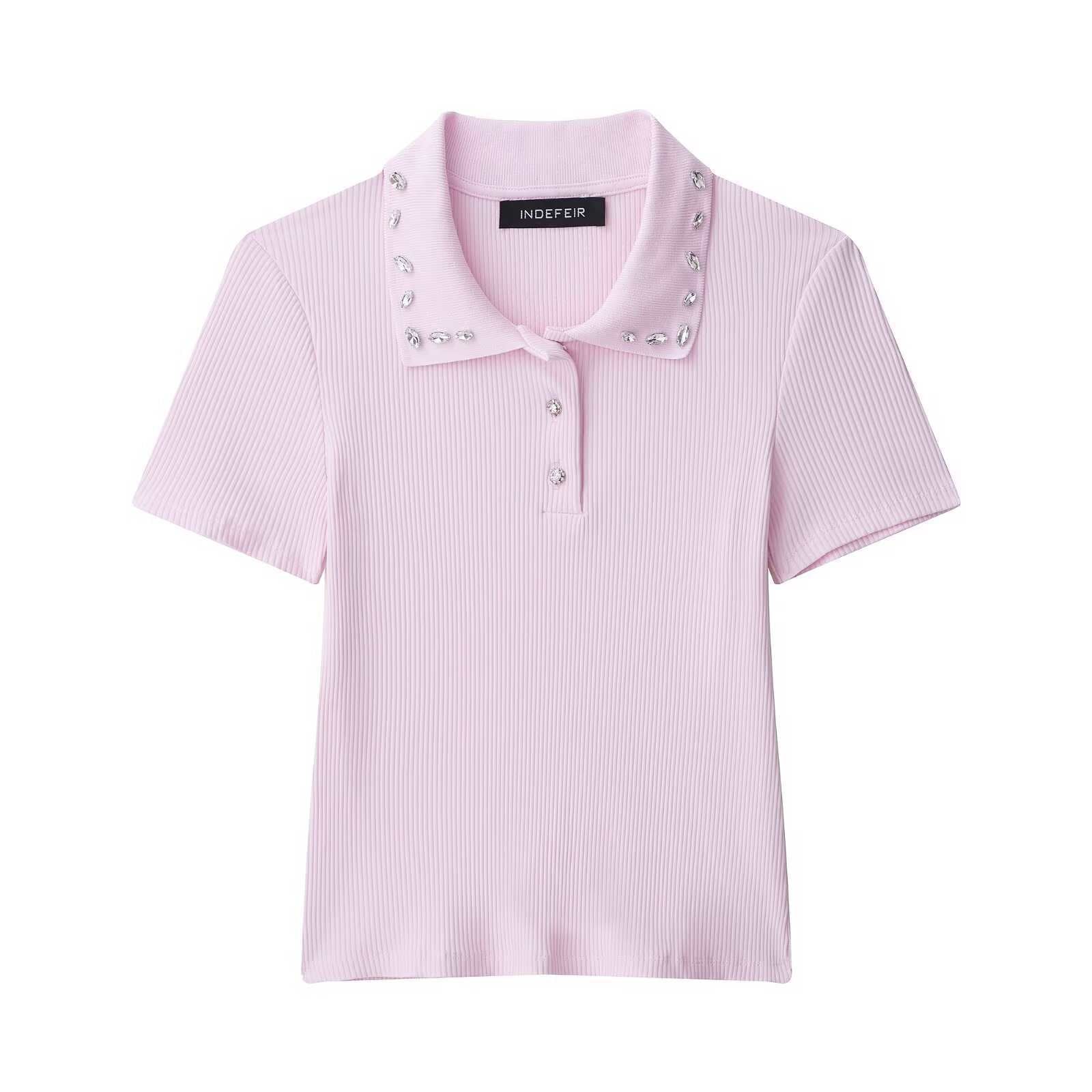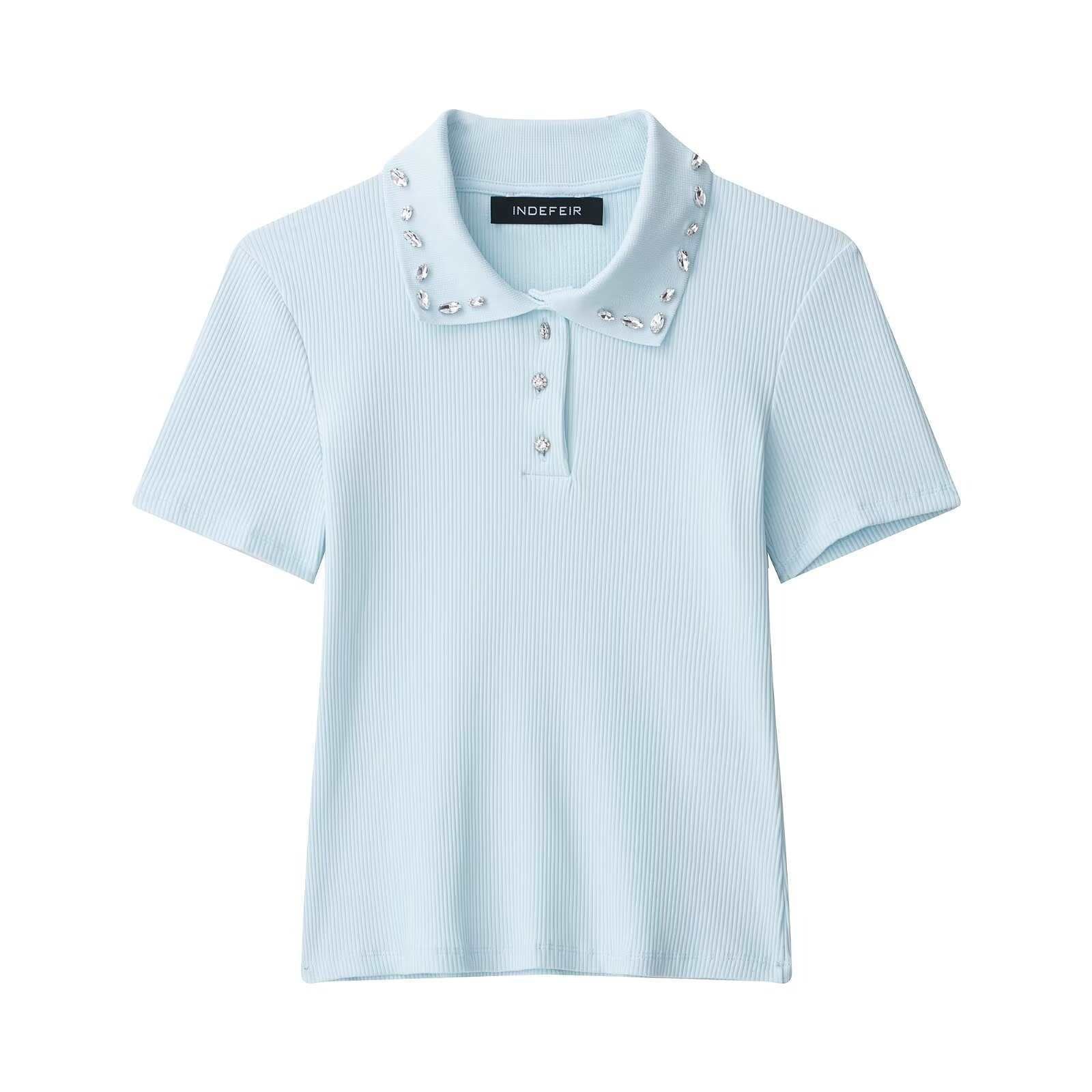 Women's Jewelry Shirt Rib Neckline Summer Slimming Blouses