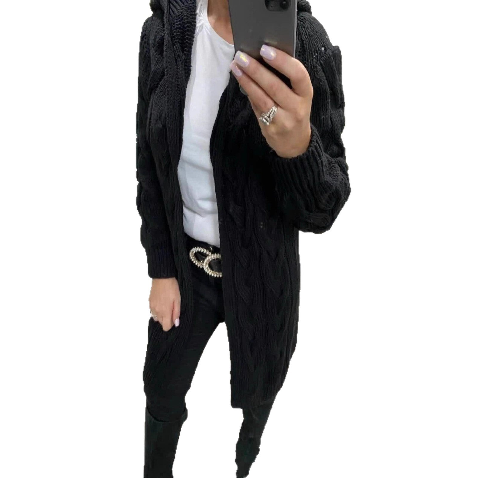 Women's Knitted Hooded Solid Color Mid-length Knitwear
