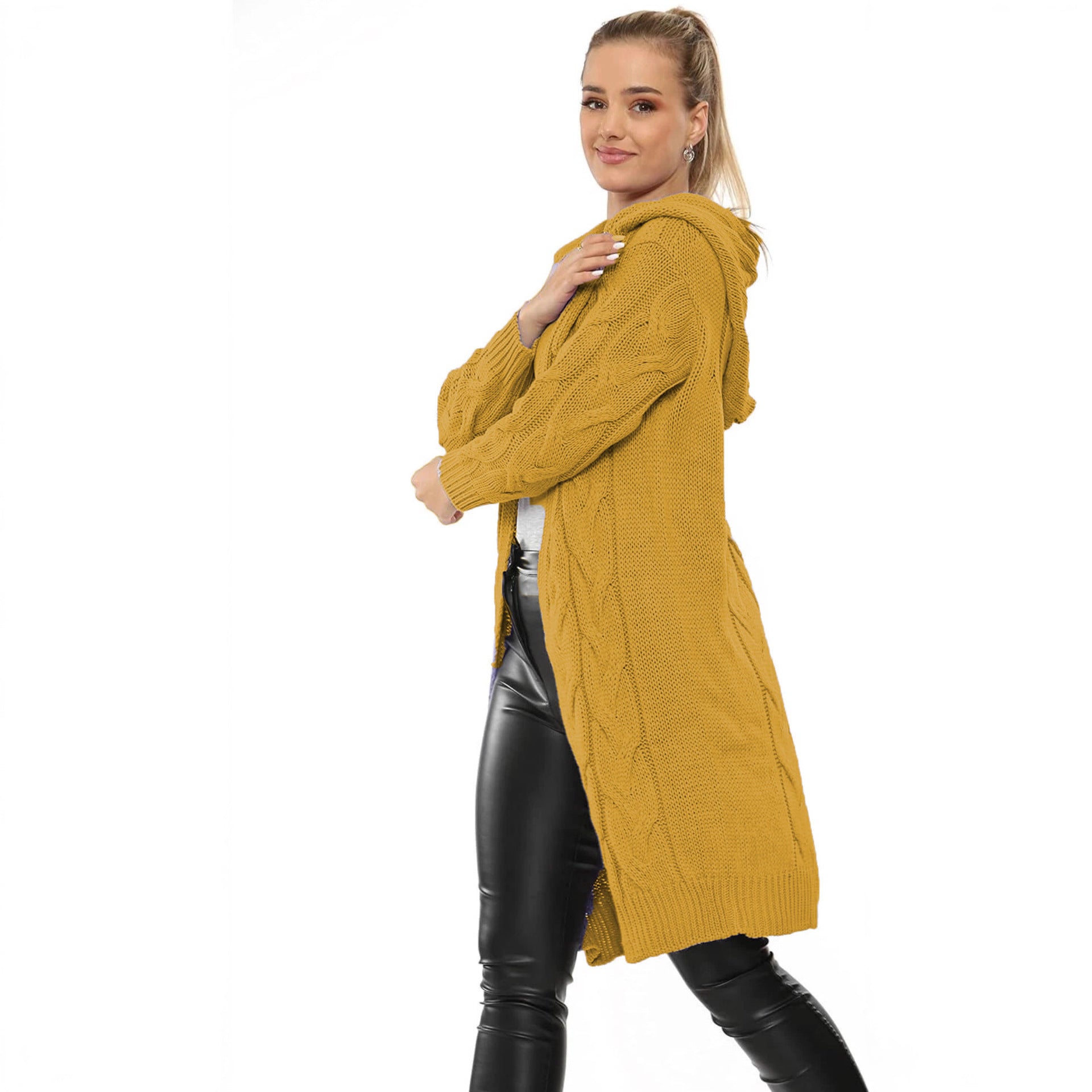 Women's Large Long Hooded Knit For Knitwear