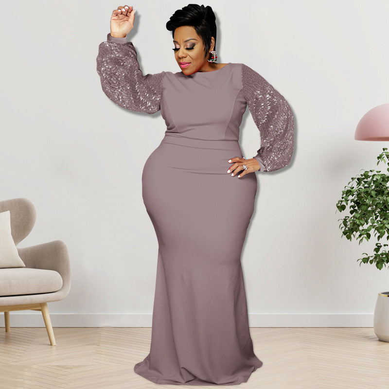 Women's Large Long Sleeve Beaded Dress Autumn Dresses