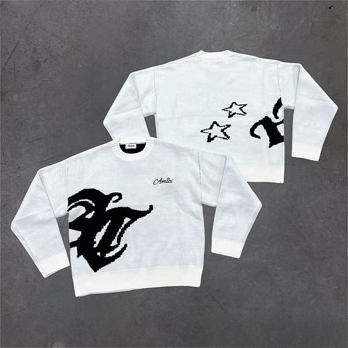 Women's & Men's & Fashion Letter Embroidery Planet Jacquard Round Sweaters