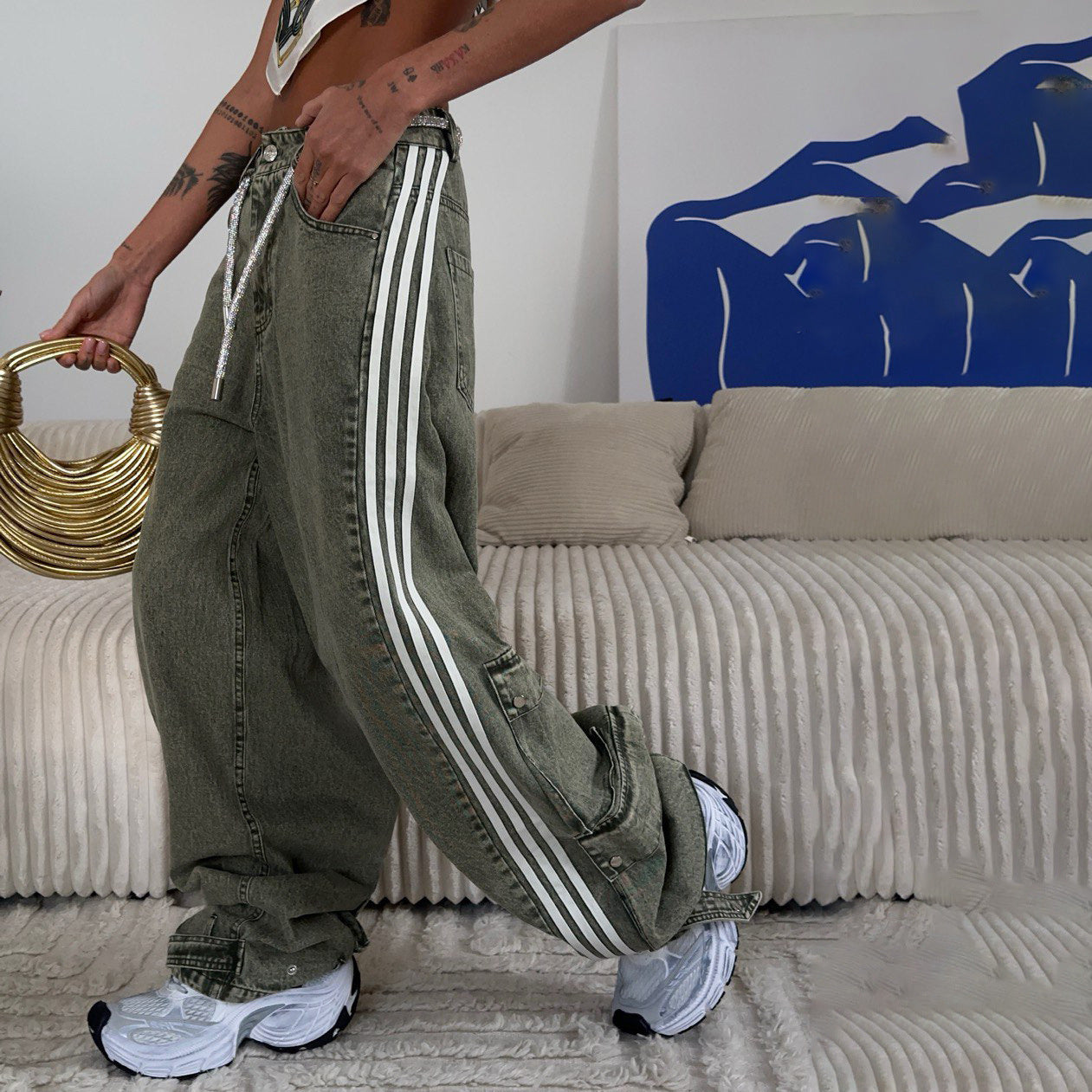 Women's Patchwork Strap Belt Versatile Casual High Jeans