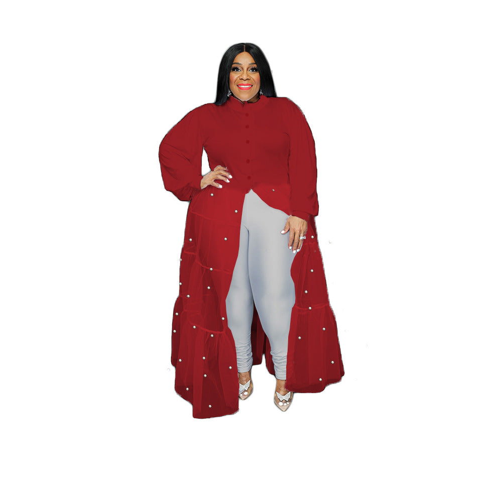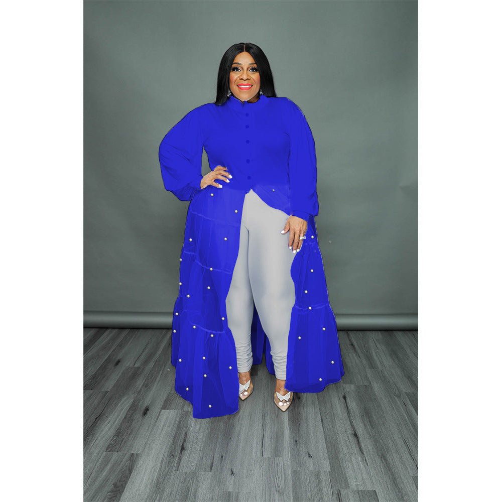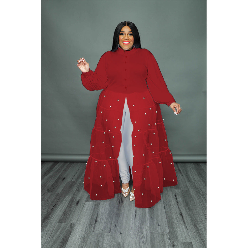 Women's Pearl Mesh Stitching Dress Featured Large Dresses