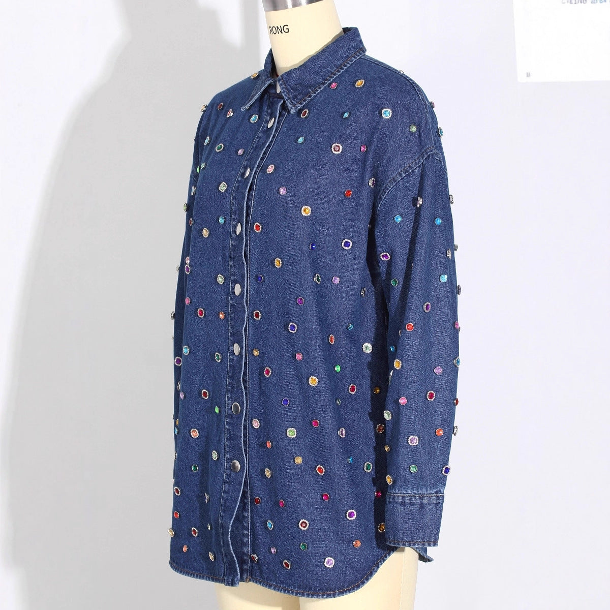 Women's Personalized Denim Two-piece Beaded Trousers Loose Jackets