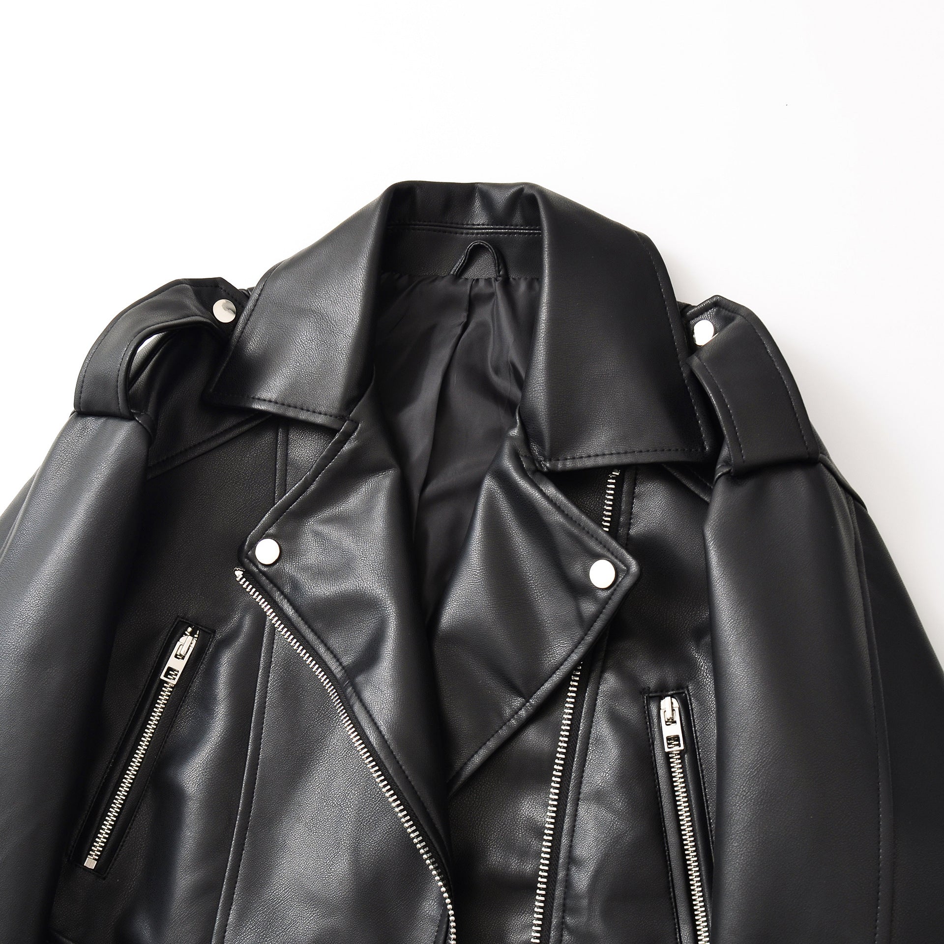 Women's Retro Cropped Leather Design Loose-fitting Jackets