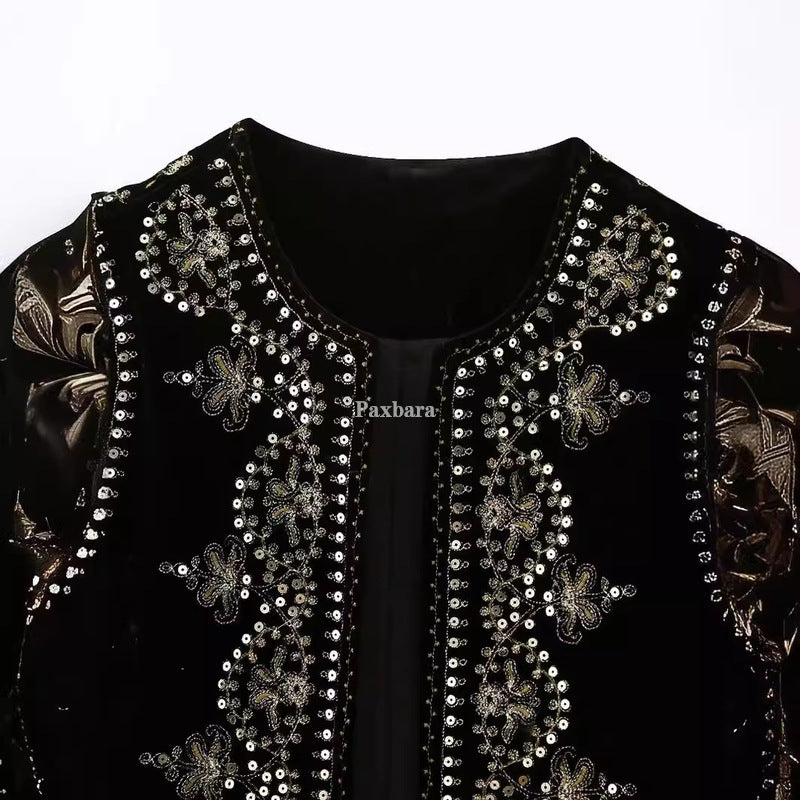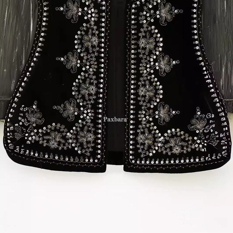 Women's Retro Fashion Casual Embroidered Veet Vests