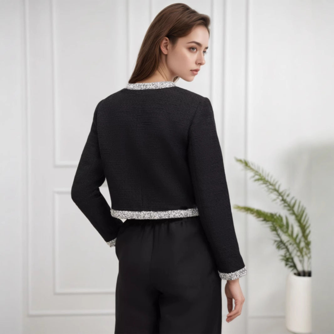 Women's Round Neck Multicolor Trim Design Classic Coats