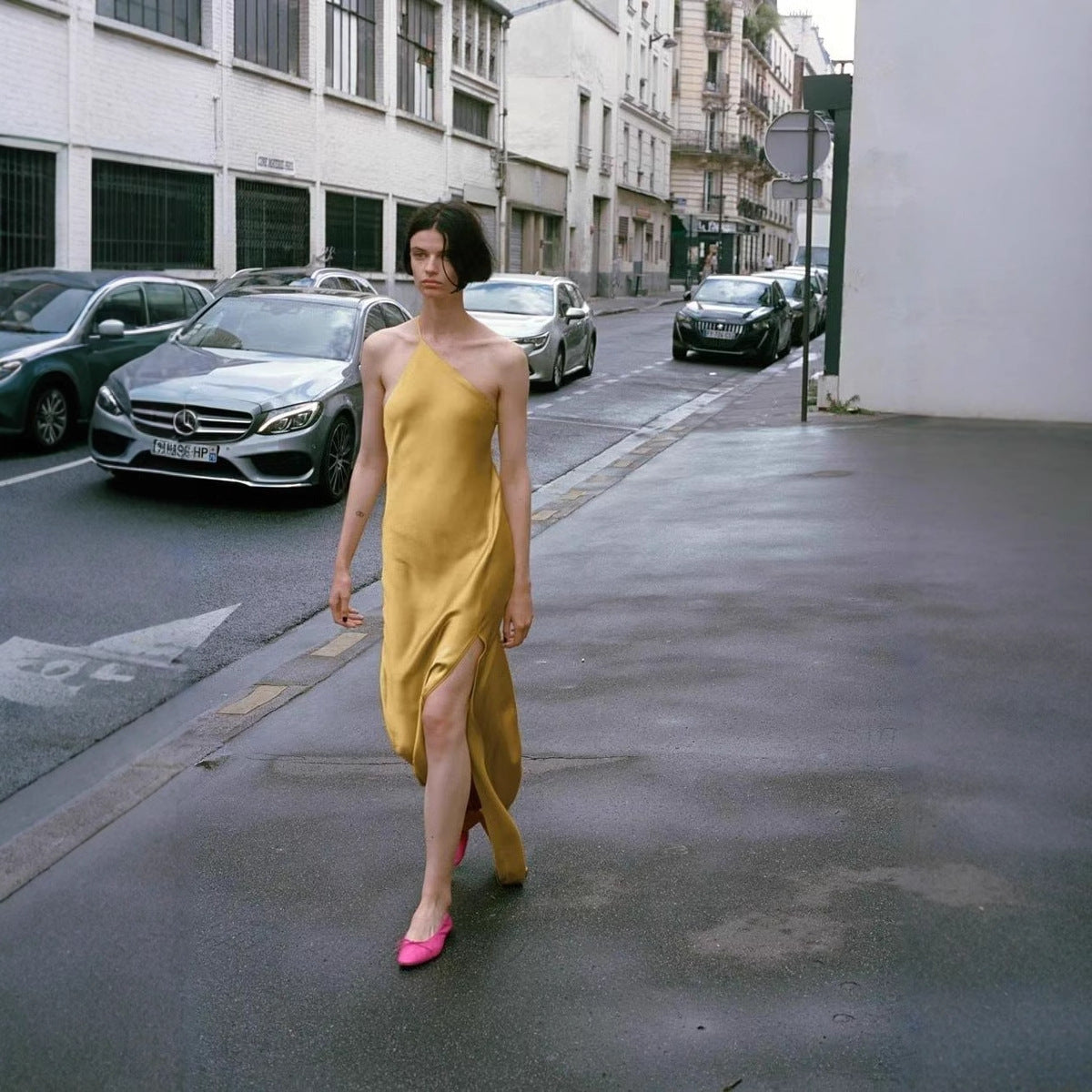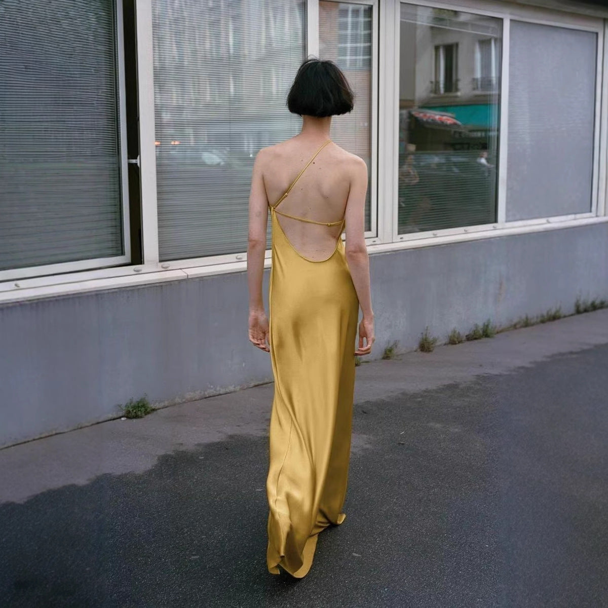 Women's Sexy Asymmetric Silk Satin Stylish Textured Clothing