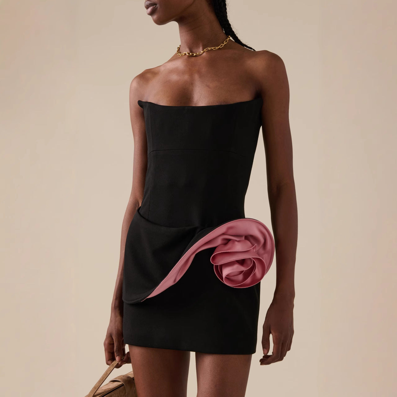 Women's Sexy Tube Dress Contrast Color Flower Skirts
