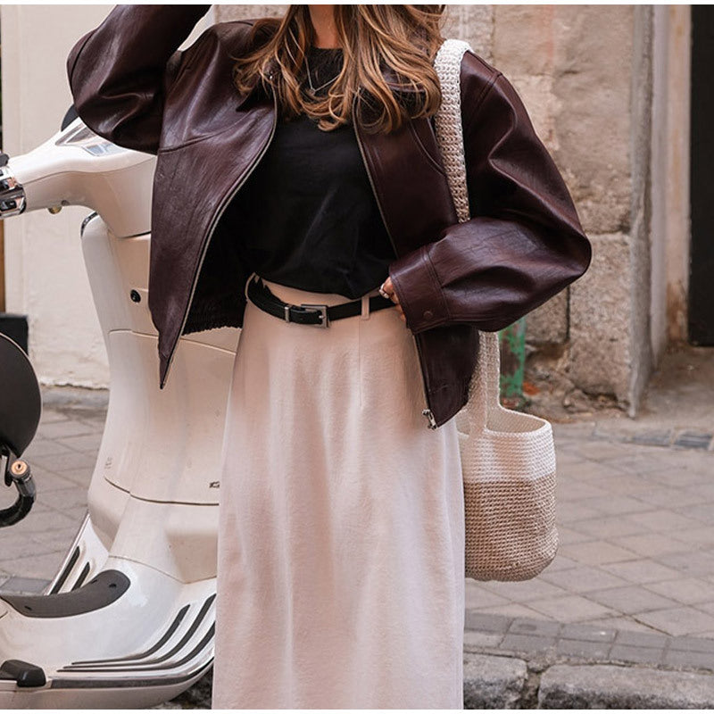 Women's Sleeve Zipper Leather Fashion Commuter Jackets