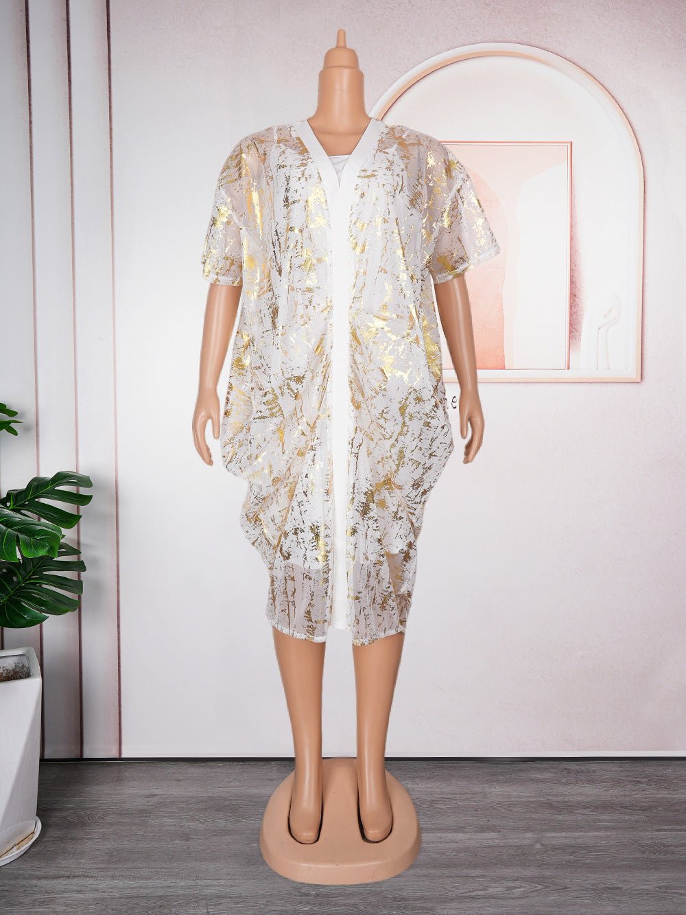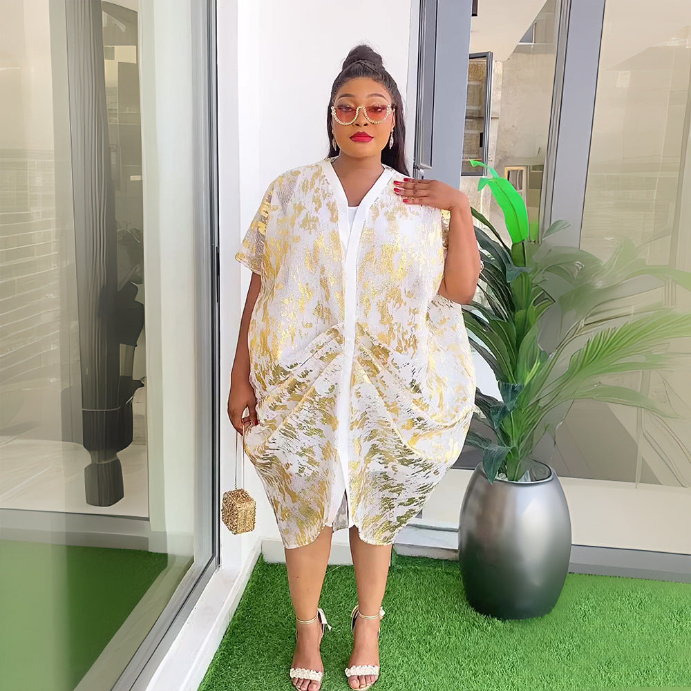 Women's Soft Grid Bronzing Dress Two-piece Sling Plus Size