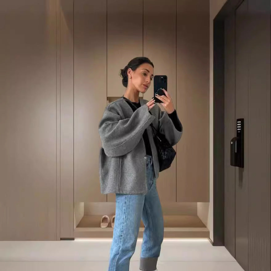 Women's Solid Color Chic Woolen Single Button Coats