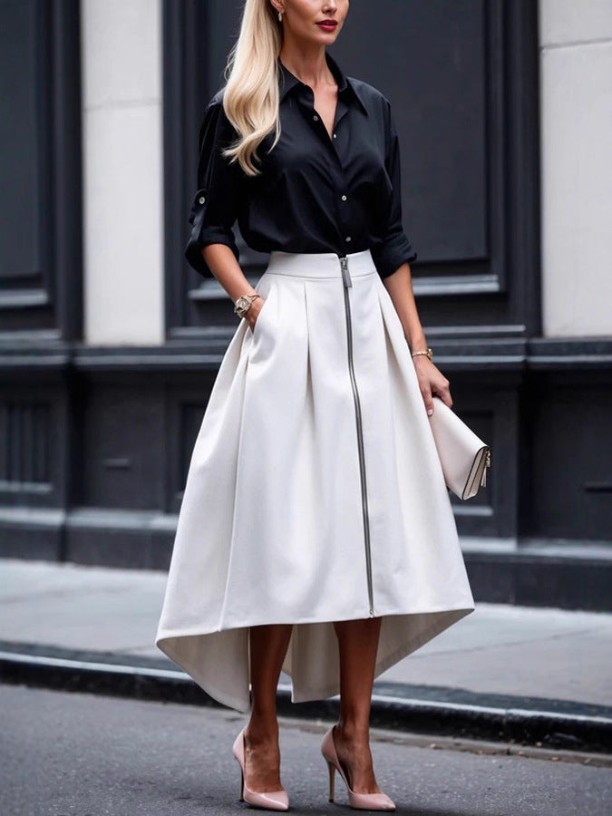 Women's Solid Color Zipper Irregular Pocket Fashion Skirts
