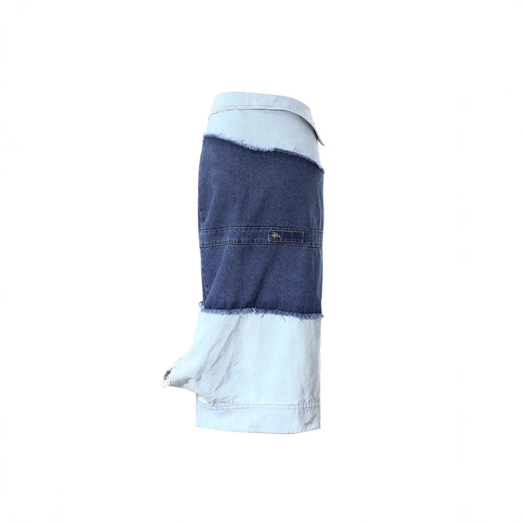 Women's Spring Dress Color Contrast Patchwork Design Personality Slim Fit Skirts