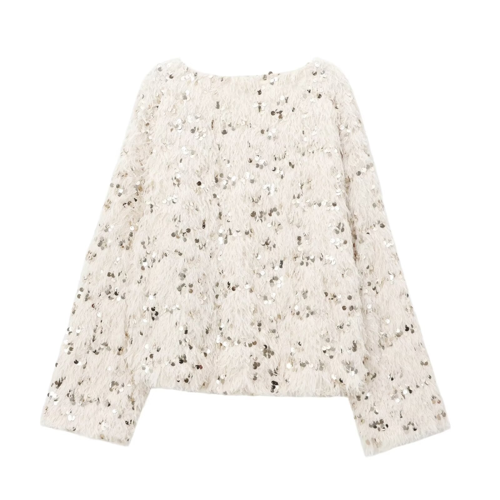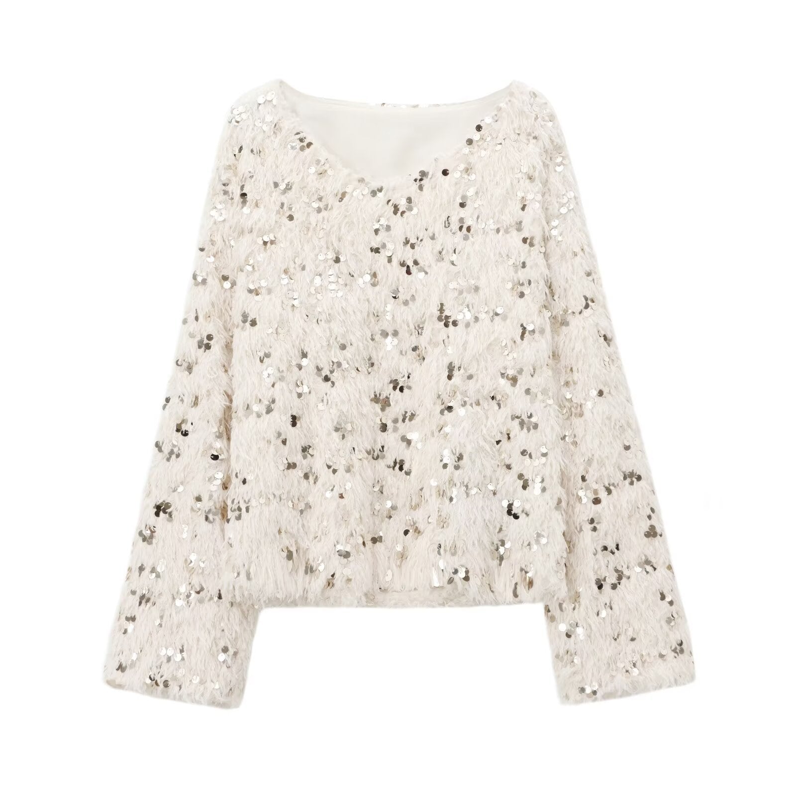 Women's Spring Sexy Sequined Feather Pullover Sweaters