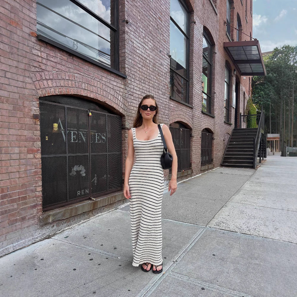 Women's Striped Contrast Color Beach Vacation Sexy Dress Knitted Dresses