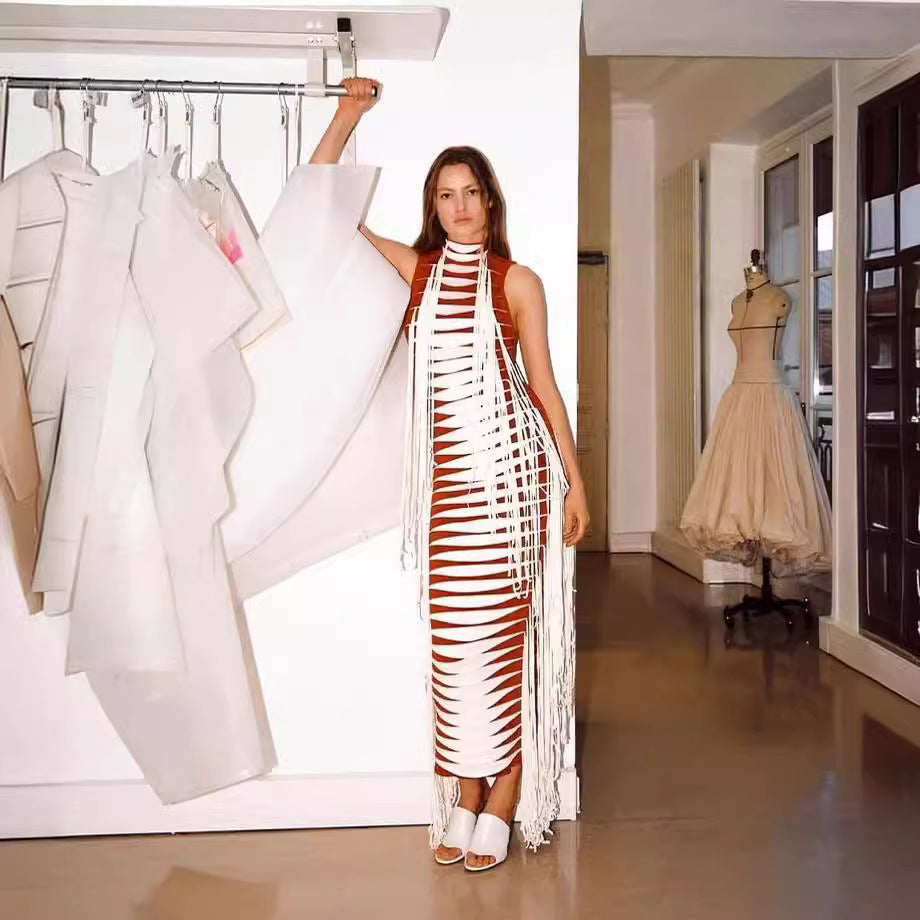 Women's Striped Sleeveless Tassel Knitted High-grade Dress Bandage Dresses