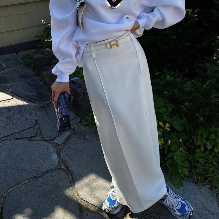 Women's Style Milky White Commuter Mopping Loose Profile Skirts