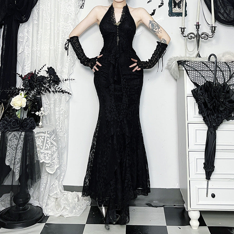 Women's Style Vintage Court Lace Dress High Waist Dresses