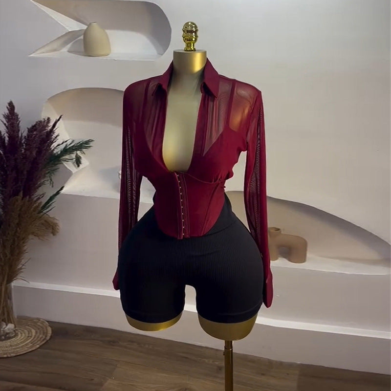 Women's Summer Dignified Sense Of Design Lapel Waist Tight Long Blouses