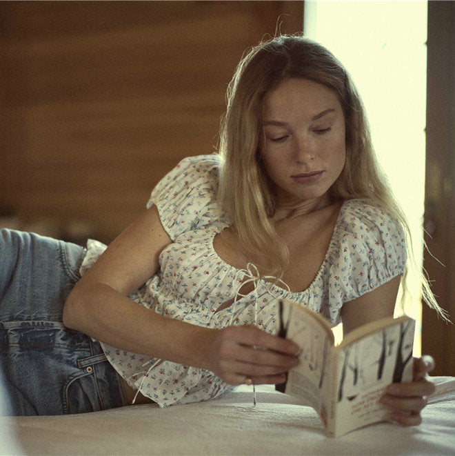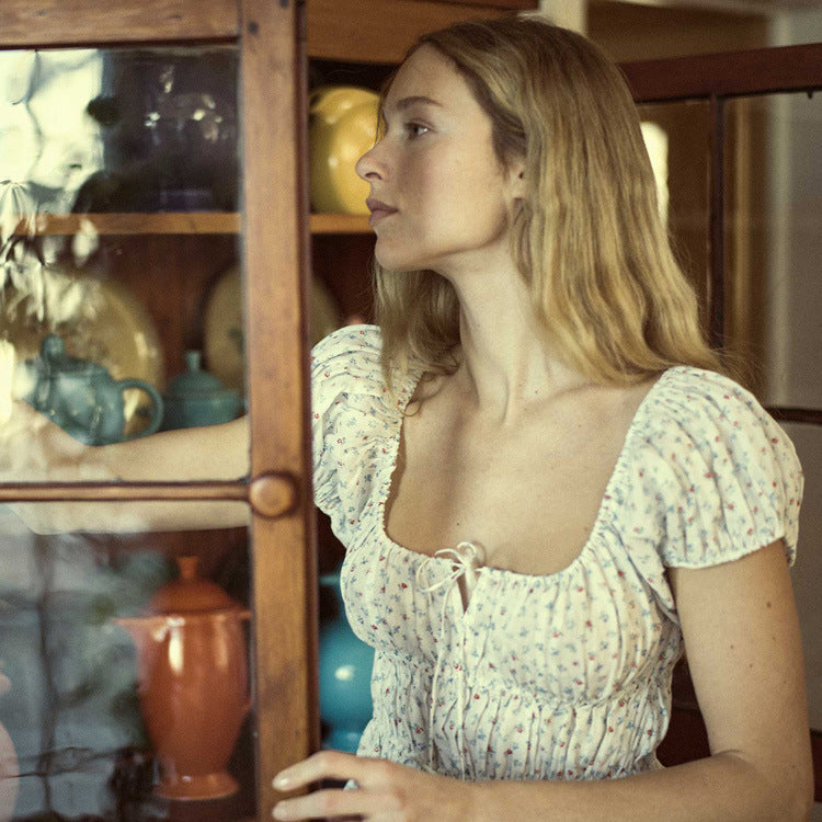 Women's Summer Print Floral Square Collar Sleeve Blouses