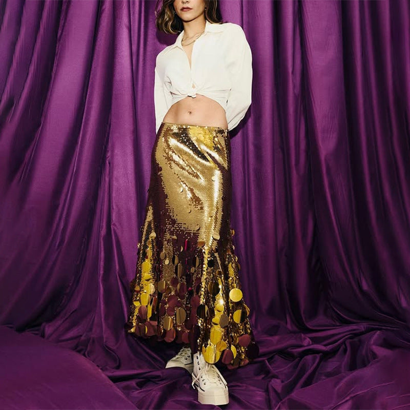 Women's Summer Stitching Sequined High Waist Dress Skirts