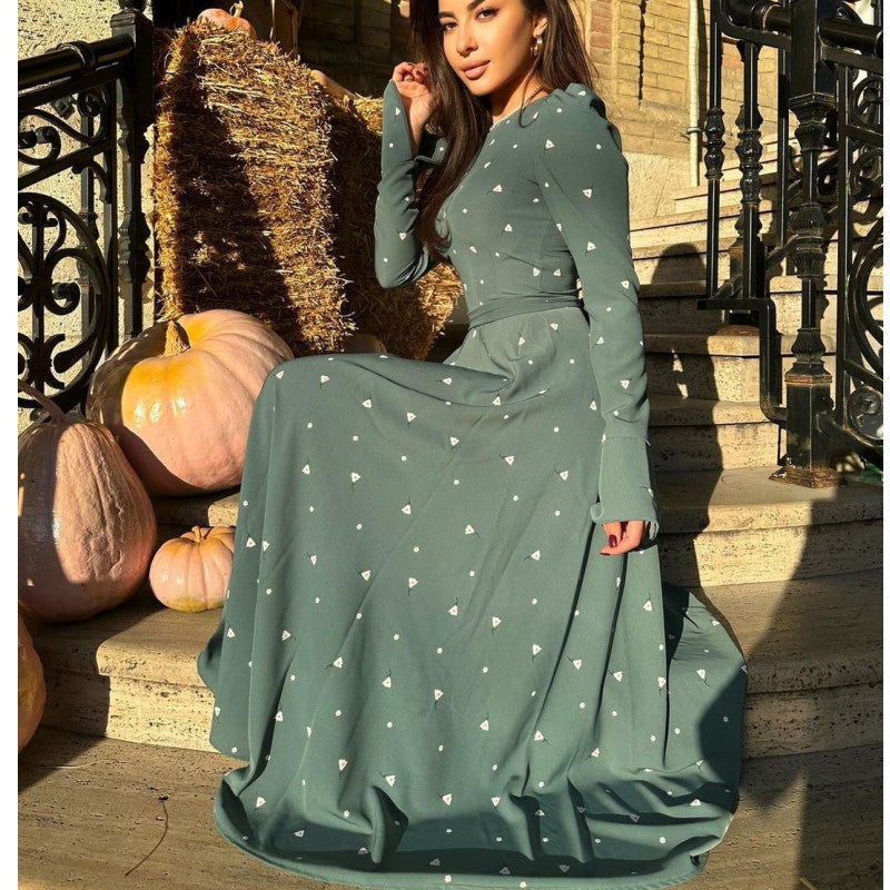 Women's Temperament Printed Long Sleeve High Waist Dresses