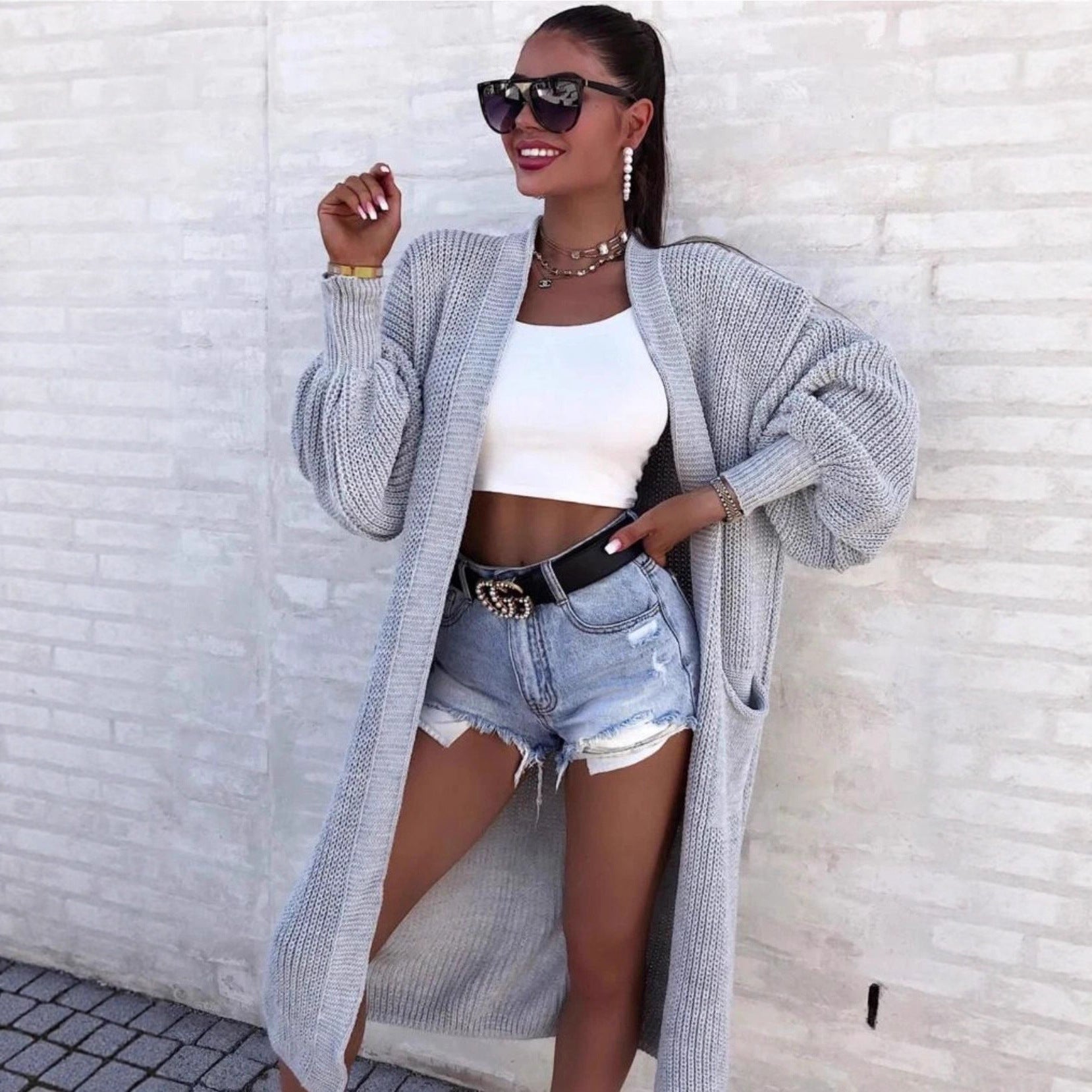 Women's Versatile Thick Needle Pocket Long Solid Knitwear