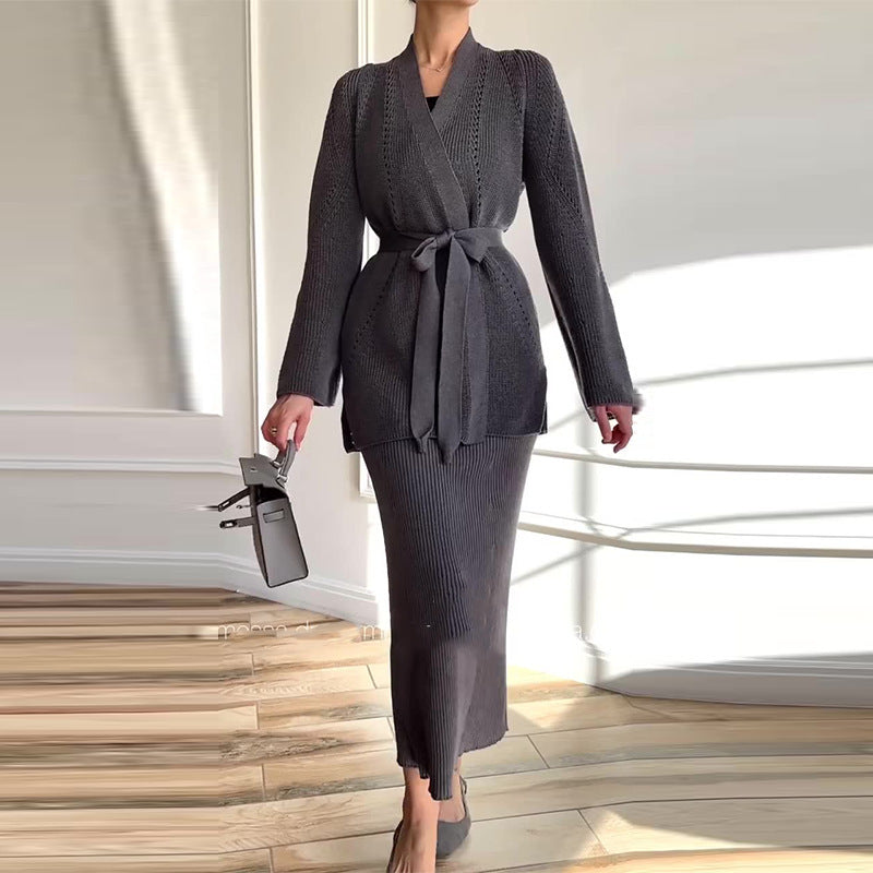 Women's Winter Solid Color Graceful Fashionable Set Sweaters