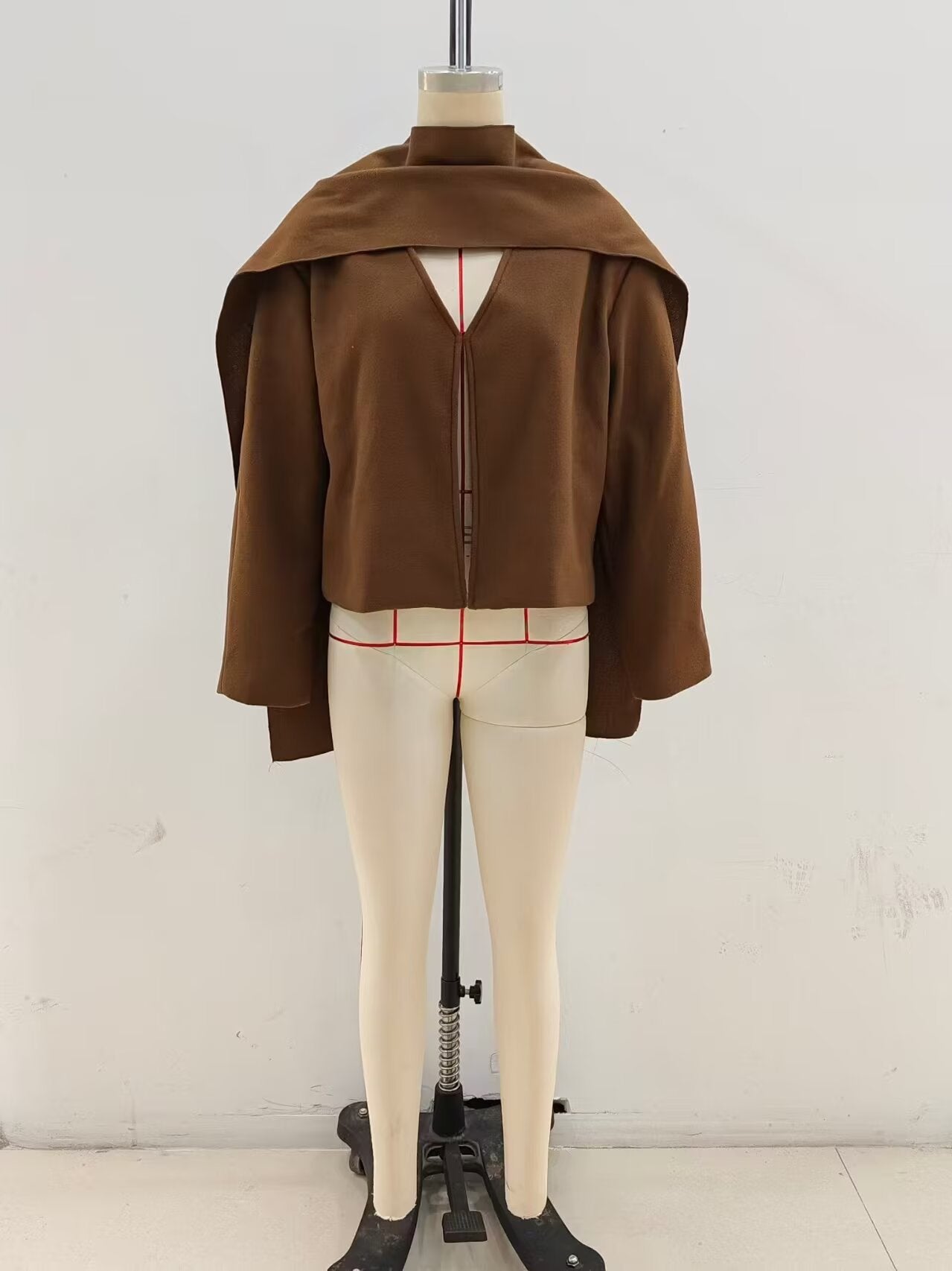 Women's Woolen Open Placket Scarf Decorative Jackets