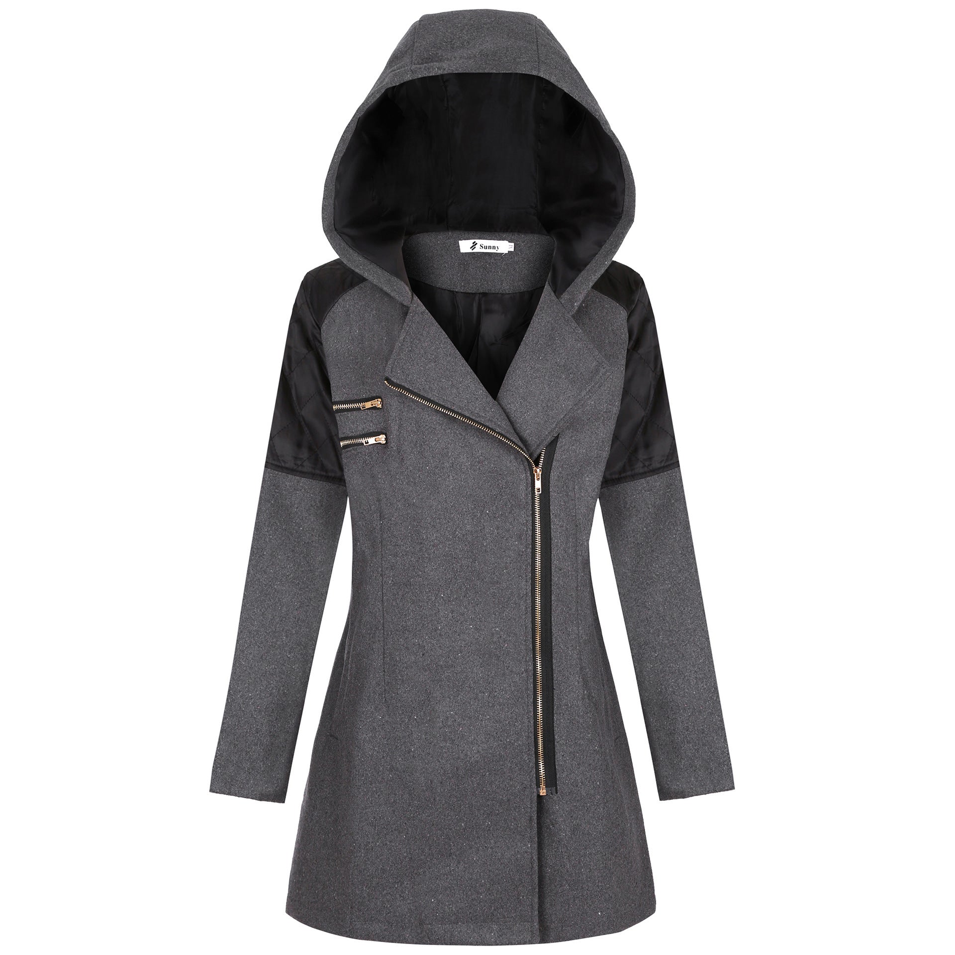 Women's Zipper Hooded Thickened Thermal Woolen Mid-length Coats